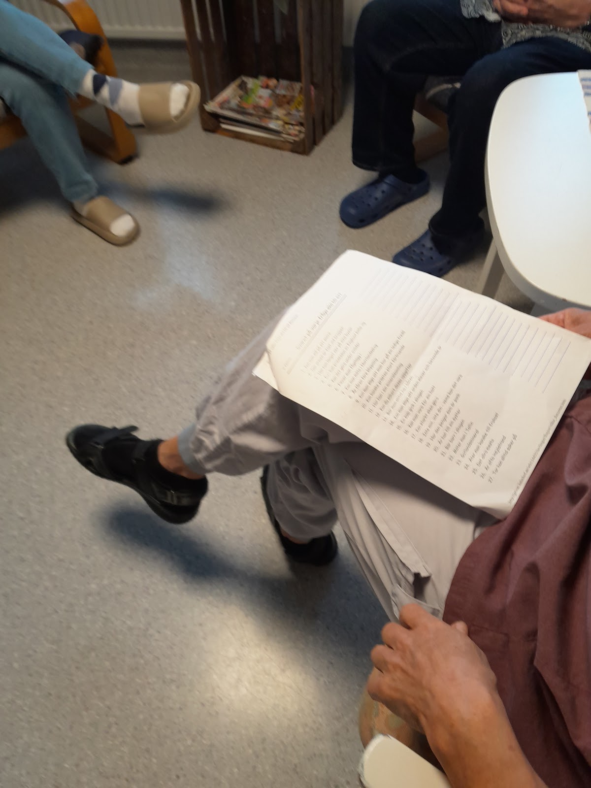 Nya ordflätor har vi klurat på och även olika klurigheter när man ska "hitta" olika namn och orter i en text. En kaka till kaffet har också bakats.